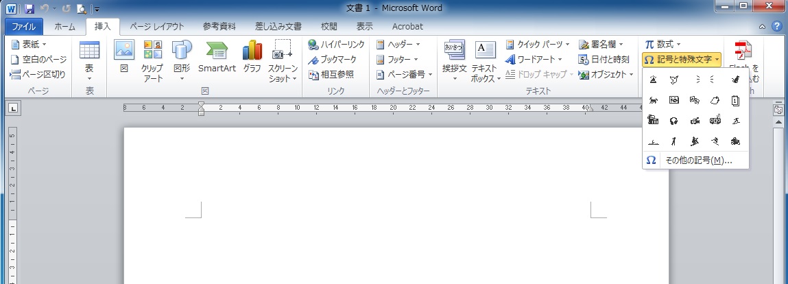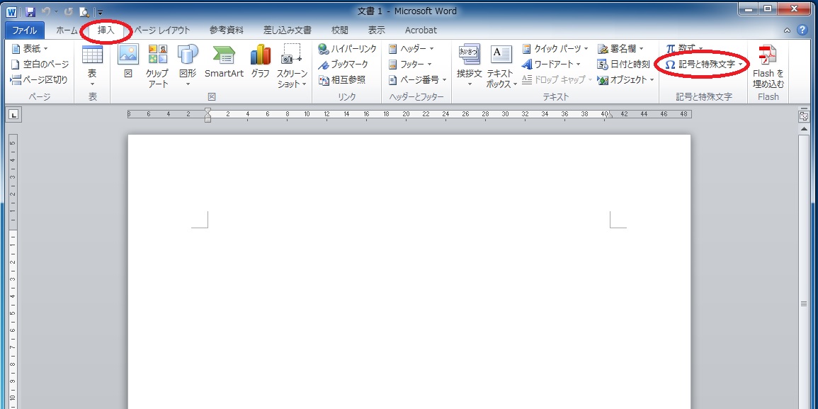タブ「挿入」の「記号と特殊文字をクリック」します。