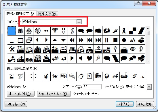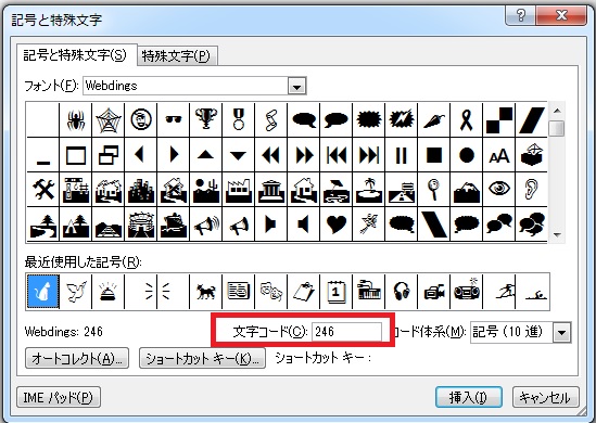 フォントで「Webdings」を選びます。